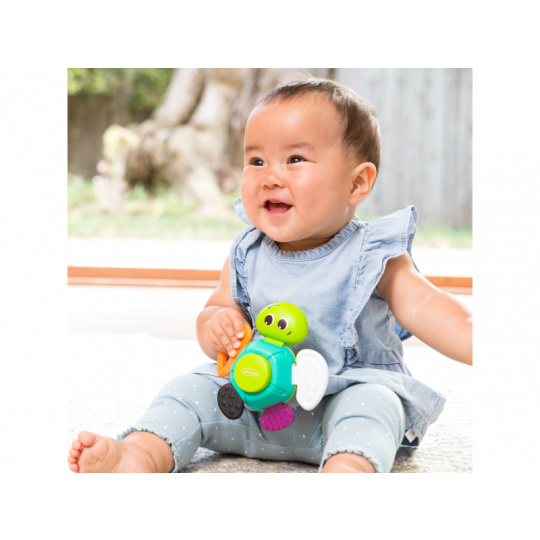 Hračka v podobě roztomilé želvičky nabízí množství ohebných a pohyblivých částí ke zkoumání. Jednotlivé části těla želvičky mají různé textury pro stimulaci hmatu. Hračka pomáhá rozvíjet jednotlivé smysly i motorické dovednosti dítěte. Vhodné pro děti od 3 měsíců.
