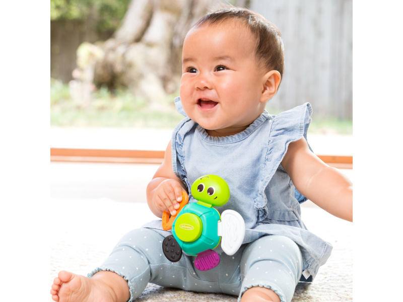 Hračka v podobě roztomilé želvičky nabízí množství ohebných a pohyblivých částí ke zkoumání. Jednotlivé části těla želvičky mají různé textury pro stimulaci hmatu. Hračka pomáhá rozvíjet jednotlivé smysly i motorické dovednosti dítěte. Vhodné pro děti od 3 měsíců.