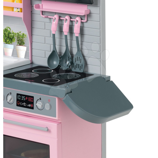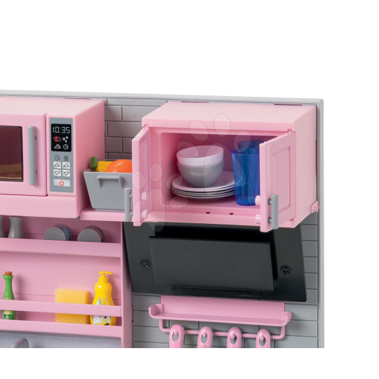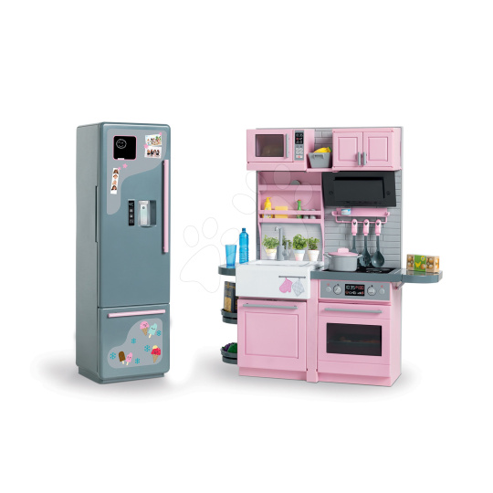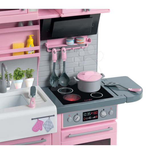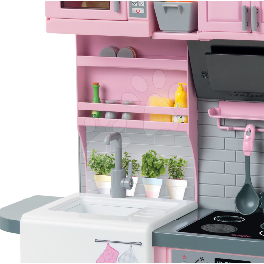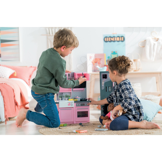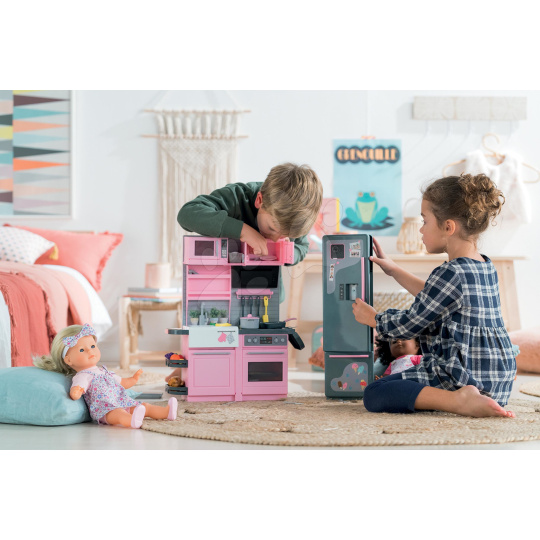Jedinečná elektronická kuchyňka pro panenku Ma Corolle už míří ik vám! Jako jediný eshop na trhu zpestříme hru vašeho děťátka touto exkluzivní kuchyňkou s ledničkou z dílny francouzské značky Corolle. Tato úžasná růžovo-šedá kuchyňka pro děti od 4 let je propracovaná do toho nejmenšího detailu a zpracováním i designem připomíná skutečnou kuchyni. Součástí krásné elektronické kuchyňky je i šedá lednice a množství doplňků, bez kterých se vaření neobejde. Luxusní a elegantní kuchyňka pro panenky Ma Corolle splňuje požadavky i těch nejnáročnějších kuchařek a dětem přinese množství skvělých zážitků. Výjimečná kuchyňka děti potěší nejen obrovským množstvím doplňků, ale i bohatým úložným prostorem. Kuchyňce nechybí funkční elektronická varná deska, trouba a myčka nádobí a chladnička v sobě zase ukrývá dávkovač vody a ledu.