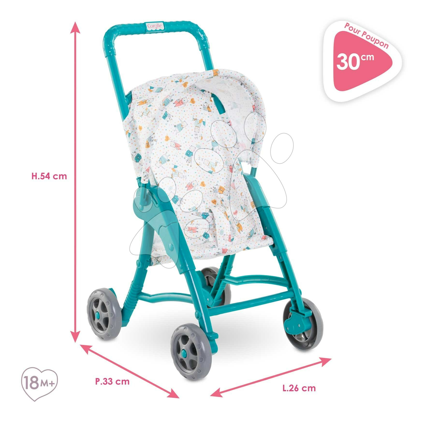 Kočárek v moderní tyrkysové barvě je vytvořen pro panenky Corolle o velikosti 30 cm, je velmi lehký a manipulace s ním bude pro děti opravdu snadná. Kočárek o rozměrech 54*26*33 cm dětičky zároveň využijí i jako chodítko a pomocníka při prvních krocích. Díky výjimečnému kočárku Mon Grand Poupon bude hra s panenkou Corolle nezapomenutelná a dětem přinese spoustu nových zážitků a krásných vzpomínek.
