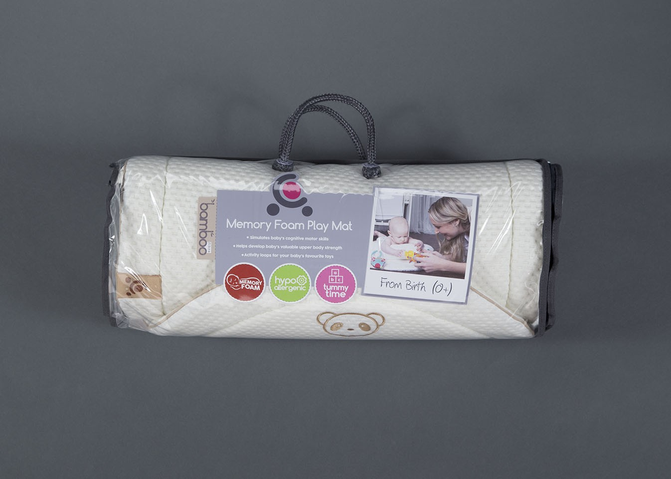 Hrací podložka Cuddle Co podporuje u děťátka objevování, natahování se, tahání a zvedání během toho, jak leží na bříšku. Základna z paměťové pěny a polštář pomáhají eliminovat tlakové body z tvrdých povrchů. Stimulace je také zajištěna pomocí skrytých protiskluzových políček, pomocí zvuků a možnosti hry s nimi. To vše aby se děťátko v poloze na bříšku bavilo a bylo v bezpečí.