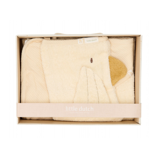 Dárková sada z kolekce Little Dutch Newborn Naturals obsahuje osušku s kapucí a žínku z jemné organické bavlny v krásném designovém provedení. Je ideální pro každodenní péči o miminko i jako stylový dárek k narození dítěte. Součástí sady je žínka ve tvaru husy a osuška s vyšitým motivem husy Vyrobeno ze 100% organické bavlny, která je mimořádně měkká, savá a šetrná k dětské pokožce Praktická osuška s kapucí rychle zahřeje po koupeli a zajistí miminku pohodlí miminku Hebká žínka je perfektní pro jemné mytí i zábavu při koupání Stylové dárkové balení - krabička je nejen krásná, ale i praktická a skvěle poslouží pro uchování vzpomínek z prvních let života dítěte Složení: 100% organická bavlna Rozměry: ssuška 75 × 75 cm, žínka: 14 × 21 cm
