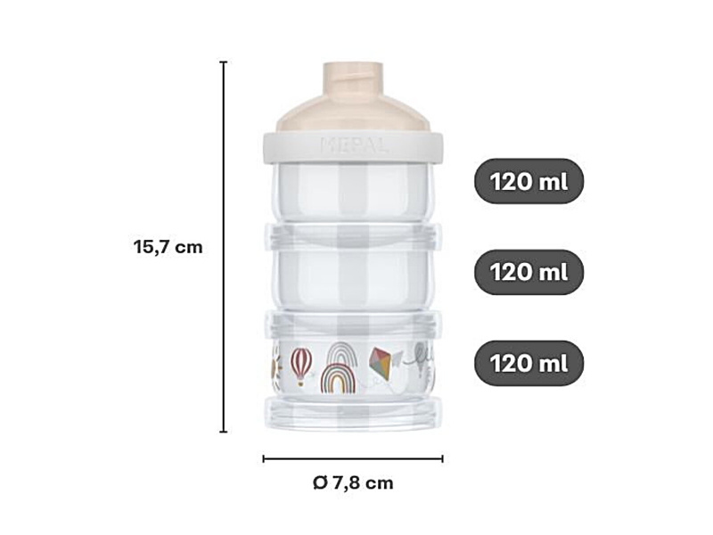 Třídílná nádoba na sušené mléko Little Dutch Forest Friends nabízí jednoduchý a hygienický způsob přípravy kojeneckého mléka doma na cestách. Nádoba obsahuje tři stohovatelné kelímky, které jsou jednotlivě uzavřeny šroubovacími víčky. Praktické nasýpací víčko nahoře usnadňuje dávkování sušeného mléka do lahve. ideální pro přípravu mléka v noci i na cestách hermeticky uzavíratelné pro tři odměřené dávky sušeného mléka vhodné do myčky Dávkovač s krásným potiskem je součástí designové kolekce hraček a doplňků Little Dutch Fairy Garden, inspirované životem na zahradě. Objem: 3 x 120 ml Složení: 100% PP, bez obsahu BPA