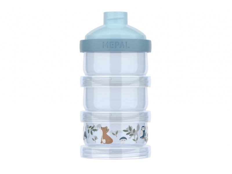 Třídílná nádoba na sušené mléko Little Dutch Forest Friends nabízí jednoduchý a hygienický způsob přípravy kojeneckého mléka doma na cestách. Nádoba obsahuje tři stohovatelné kelímky, které jsou jednotlivě uzavřeny šroubovacími víčky. Praktické nasýpací víčko nahoře usnadňuje dávkování sušeného mléka do lahve. ideální pro přípravu mléka v noci i na cestách hermeticky uzavíratelné pro tři odměřené dávky sušeného mléka vhodné do myčky Dávkovač s krásným potiskem je součástí designové kolekce hraček a doplňků Little Dutch Forest Friends, inspirované životem v lese. Objem: 3 x 120 ml Složení: 100% PP, bez obsahu BPA