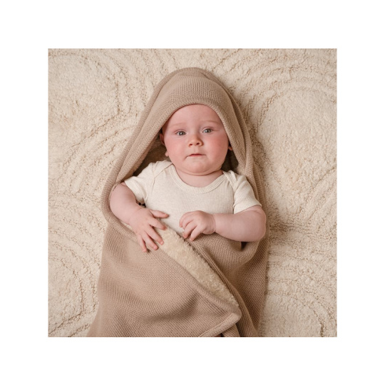 Pletená deka z organické bavlněné pleteniny a jemného fleecu je ideální pro zavinutí miminka v kočárku, kolébce či košíku. Díky otvoru pro bezpečnostní pás je možné ji použít i v autosedačce nebo lehátku. Deka je testována na TOG hodnotu, která určuje hřejivost spacích pytlů a dek. Čím vyšší je hodnota TOG, tím je produkt teplejší. Deka má hodnotu TOG 2,3, jedná se tedy o teplou deku vhodnou do chladnějšího prostředí. Složení: 100% organická bavlna, vnitřní strana 100% polyester, certifikováno OEKO-TEX® Standard 100 Rozměry: 75 x 75 cm