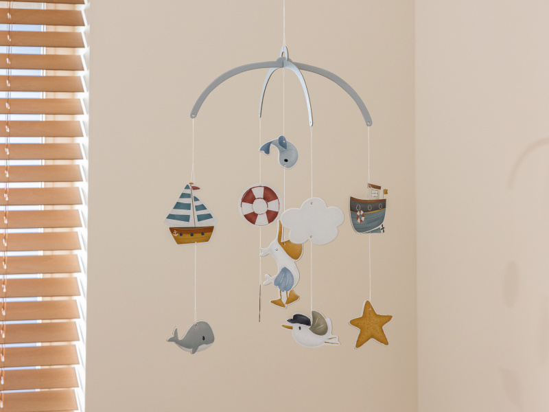 Dekorativní kolotoč s krásnými motivy kolekce Námořnický záliv upoutá pozornost vašeho dítěte v postýlce a stane se i originální dekorací dětského pokoje. Plachetnice, rackové, velryby a další motivy ze života na moři pomohou rozvíjet zrak dítěte a zároveň se jejich pozorováním uklidní před spaním. Kolotoč je součástí designové kolekce Little Dutch Námořnický záliv, ve které najdete ložní prádlo, dekorativní doplňky do dětského pokoje, dřevěné a plyšové hračky i jídelní doplňky pro dětské stolování. Konstrukce kolotoče i zavěšené motivy jsou vyrobeny z kvalitního silného kartonu. Kolotoč snadno zavěsíte s pomocí šňůrky od stropu.