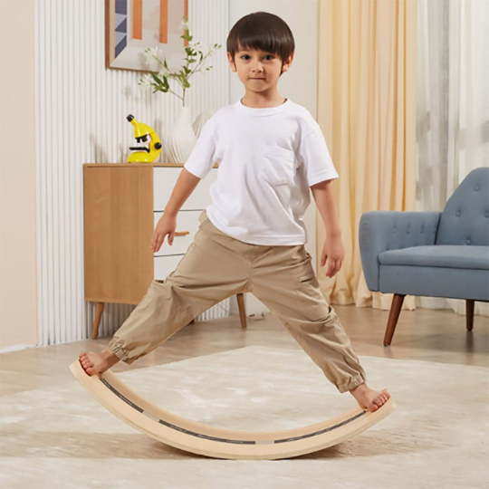 Multifunkční balanční deska pomáhá: rozvíjet rovnováhu, stimulovat vestibulární systém, fyzicky posilovat tělo a uvědomovat si pohyblivost vlastního těla. Díky tažnému lanu může dítě sedět jako na skateboardu a nechat se táhnout. Možnosti využití desky jsou prakticky neomezené. Lze ji použít například jako; houpačku, závodní dráhu, surfovací prkno, houpacího koně, postel, most, skluzavku atd. Dítě využije svou představivost a objeví další kreativní způsoby hry. Aby byla hra zajímavější, jsou k desce k dispozici 3 samolepicí proužky s vyobrazením: silnice, kolejí a parkoviště.