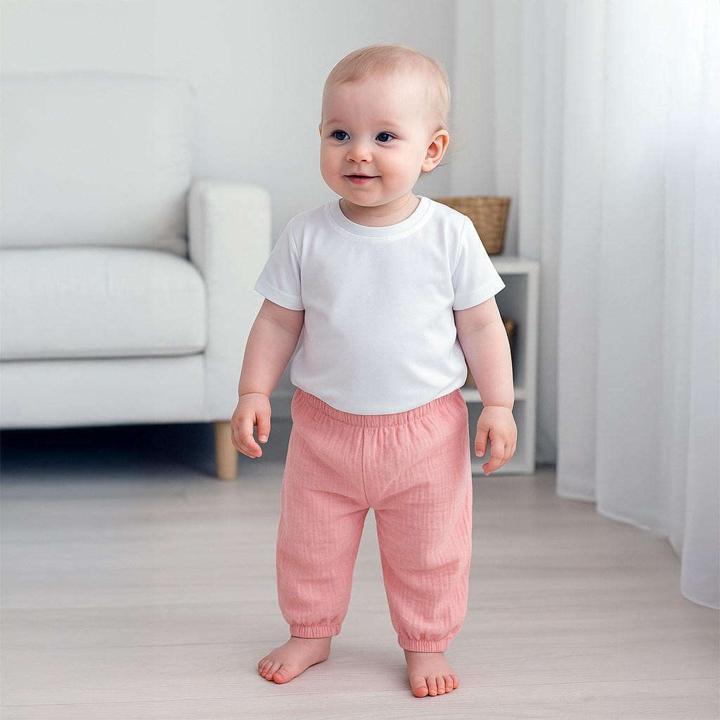 Stylová a praktická 2-dílná dětská souprava české značky New Baby Kindergarten. Soupravička se skládá z bavlněného trička s krátkým rukávem a mušelínových kalhot. Velmi praktický set pro děti i do školky. Bavlněné tričko je velmi pohodlné už jen tím, že je vyrobeno z kvalitní bavlny, bez zapínání, s jemným lemem okolo krčku. Lem nesmí tlačit, obepínat a tričko se musí snadno oblékat přes hlavičku. Mušelínové dětské jednobarevné kalhoty s moderním designem jsou ušité z kvalitního mušelínu. Pro velmi snadné oblékání mají praktický volný střih, v pase a na nohavičkách je gumička, která netlačí. Kalhoty jsou velmi vhodné i na běžné dětské činnosti. Složení: 100% bavlna. OEKO-TEX STANDARD 100. Mušelín je jedna z nejčistších, nejjednodušších a nejjemnějších tkanin na světě. Je to tkaný prodyšný materiál, který si zamilovali děti i rodiče po celém světě. Mušelín je velmi odolný a to tak, že bez problémů zvládá opakované praní. Rozměrová tabulka-poslední foto.