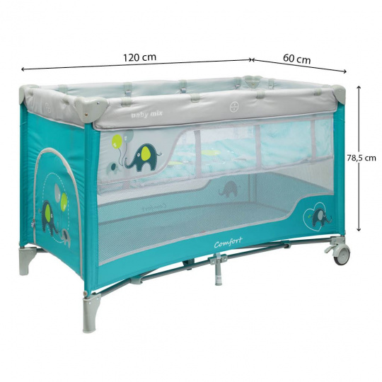 Praktická přenosná cestovní postýlka Baby Mix slouží nejen jako cestovní postýlka, ale taky jako ohrádka. Užijte si čas strávený s Vaším děťátkem kdykoli budete na dovolené nebo na cestách. I prarodiče si mohou užít přítomnost svých vnoučátek, i když už nemají dětskou postýlku. Díky jednoduchému skládacímu mechanismu postýlku rychle a snadno složíte, vložíte do přiložené praktické tašky s popruhy a pohodlně dáte do auta. Postýlka je velmi lehká, je opatřena kolečky s integrovanou brzdou, takže ji můžete snadno převézt do jiné místnosti, na balkon, terasu či zahradu.