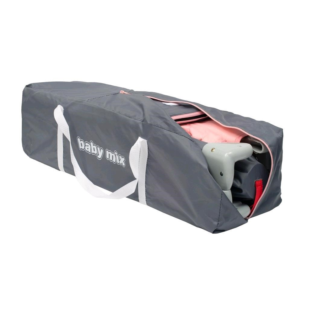 Praktická přenosná cestovní postýlka Baby Mix slouží nejen jako cestovní postýlka, ale taky jako ohrádka. Užijte si čas strávený s Vaším děťátkem kdykoli budete na dovolené nebo na cestách. I prarodiče si mohou užít přítomnost svých vnoučátek, i když už nemají dětskou postýlku. Díky jednoduchému skládacímu mechanismu postýlku rychle a snadno složíte, vložíte do přiložené praktické tašky s popruhy a pohodlně dáte do auta. Postýlka je velmi lehká, je opatřena kolečky s integrovanou brzdou, takže ji můžete snadno převézt do jiné místnosti, na balkon, terasu či zahradu.