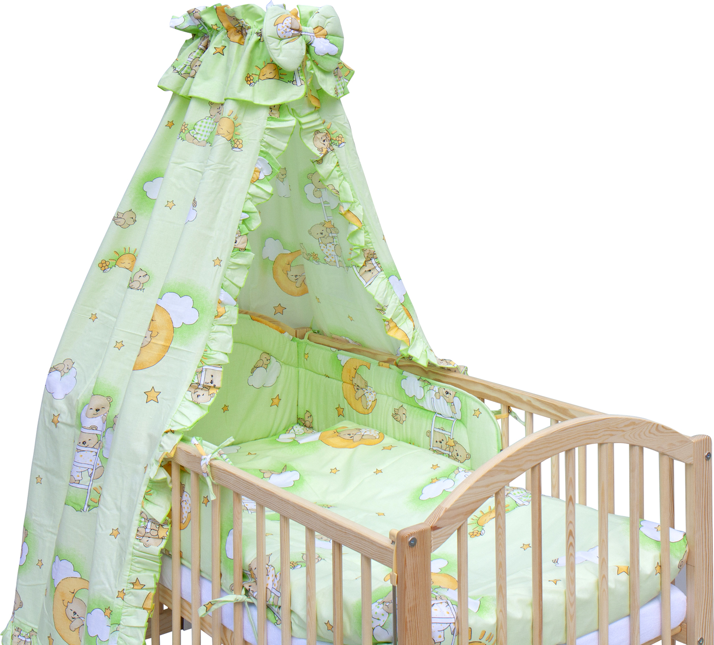 Součástí balení je kompletní výbava – kvalitní matrace, roztomilá sada povlečení, mantinel a prostěradlo s nebesy, takže máte vše potřebné hned po rozbalení.