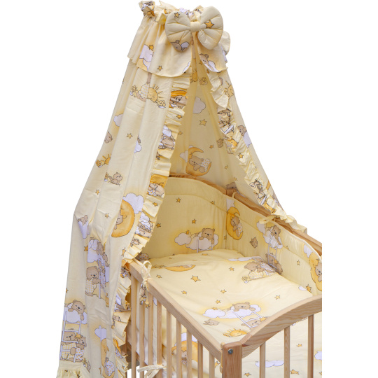 Součástí balení je kompletní výbava – kvalitní matrace, roztomilá sada povlečení, mantinel a prostěradlo s nebesy, takže máte vše potřebné hned po rozbalení.