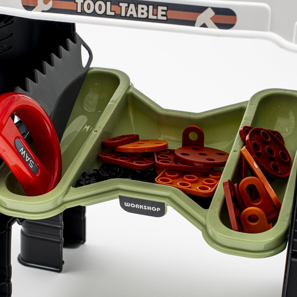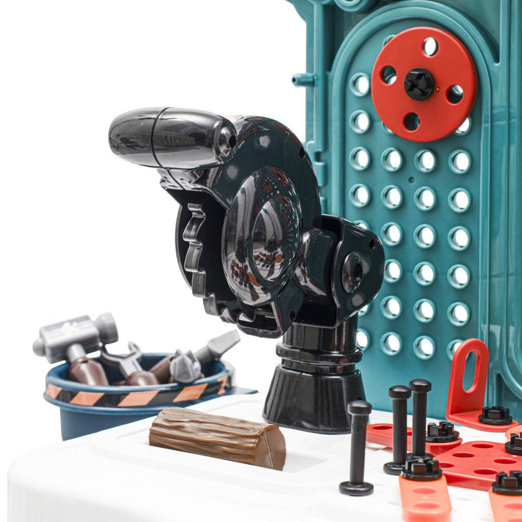 Dětská dílna obsahující 103 kusů nářadí je skvělým nástrojem pro malé nadšence do práce s dřevem, montáže nebo řemeslných činností. Dílna obsahuje šrouby, pilu, svěrák, kleště a další.