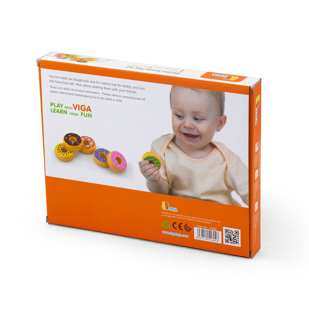 Dětská dřevěná hračka Viga sada 6 dřevěných donutů