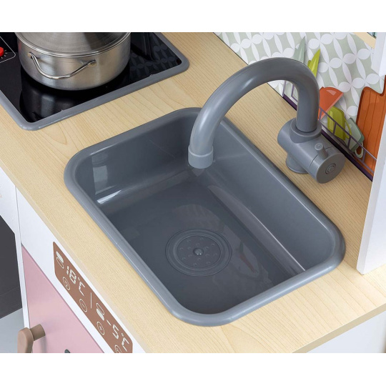 Milly Mally vsadila na bohaté vybavení, které zahrnuje pánev, hrnec s pokličkou a dřevěné vařečky k zavěšení na háčky pod digestoří. Děti se díky této hračce učí odpovědnosti za vlastní kuchyň a úklid při hře. Tato kuchyně je také vybavena výškově nastavitelnými nožkami, což zaručuje, že roste spolu s dítětem.