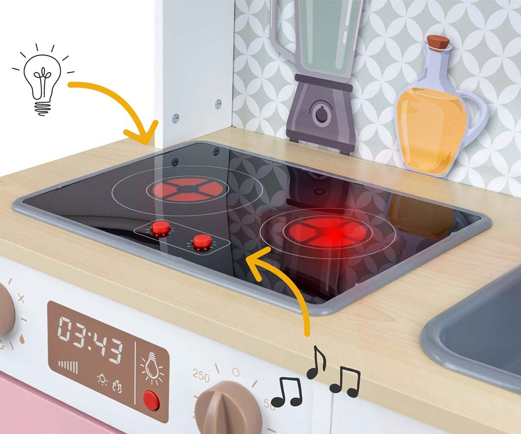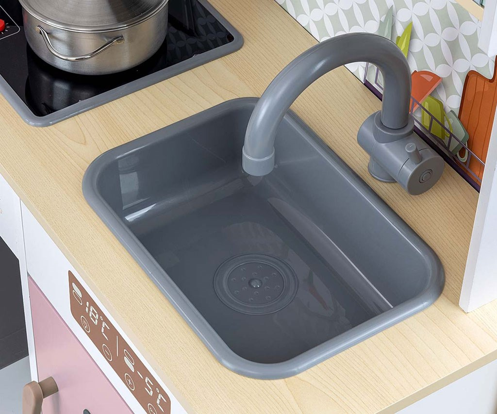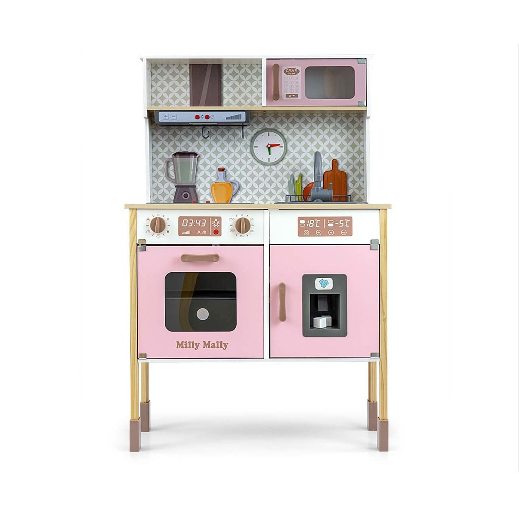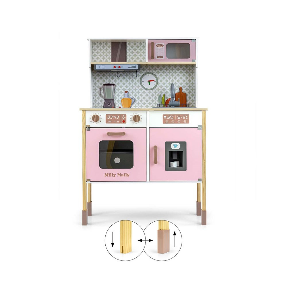 Milly Mally vsadila na bohaté vybavení, které zahrnuje pánev, hrnec s pokličkou a dřevěné vařečky k zavěšení na háčky pod digestoří. Děti se díky této hračce učí odpovědnosti za vlastní kuchyň a úklid při hře. Tato kuchyně je také vybavena výškově nastavitelnými nožkami, což zaručuje, že roste spolu s dítětem.