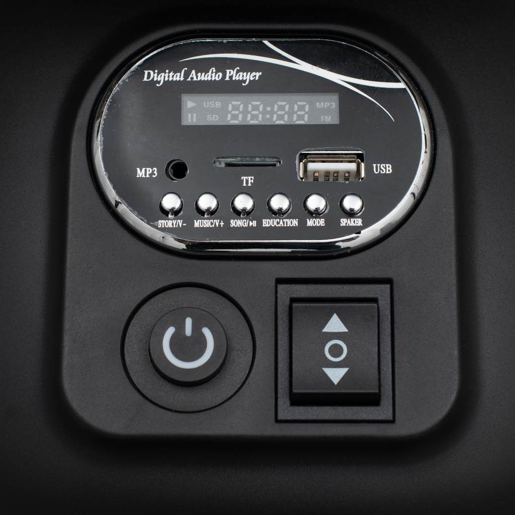 - Nadčasový design, LED osvětlení kol, zvukové a světelné efekty, USB, MP3