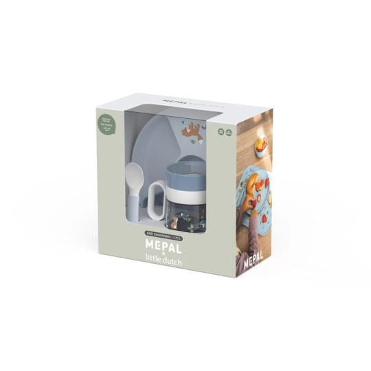 3-dílná jídelní sada v krásném designu s jemným potiskem obsahuje dětský dělený talíř, trénovací hrnek se systémem 360° a lžičku. Dětský talíř s krásným potiskem má protiskluzové dno a vysoký okraj, který pomáhá dítěti jídlo nabrat na lžíci. Talíř je tak ideální pro první samostatné stolování dítěte. Vyjímatelná přihrádka umožňuje rozdělení jednotlivých částí jídla do 2, 3 nebo 4 přihrádek. Díky praktickému úchytu se talíř snadno přenáší. Je vyroben z lehkého, mimořádně odolného plastu. Trénovací hrnek 200 ml je ideální pro děti, které se učí pít z klasického hrnku. Silikonové víčko se systémem 360° umožňuje pít z kteréhokoli místa po obvodu hrnku bez rizika rozlití. Tekutina teče z hrnku po naklonění k ústům dítěte kontrolovaným způsobem, takže dítě na sebe při pití obsah hnku nevylije. Když pít přestane, hrnek se díky speciální membráně automaticky uzavře. Držadla usnadňují držení hrnku malými dětskými ručičkami. Sada je součástí designové kolekce hraček a doplňků pro děti Little Dutch Forest Friends, inspirované životem v lese. Vhodné do myčky i mikrovlnné trouby. Materiál: PP, TPE, silikon, Tritan, neobsahuje melamin ani BPA Rozměry talíře: průměr 20 cm, výška 2,7 cm Objem hrnku: 200 ml Vhodné pro děti od 6 měsíců.