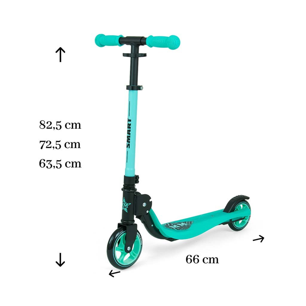 Koloběžka Milly Mally Smart je ideální nejen pro větší děti, ale i dospělé s maximální hmotností do 100 kg. Jízdou na koloběžce procvičujete rovnováhu, posilujete svalový systém celého těla a trénujete vytrvalost. Díky použití větších koleček dokáže koloběžka Smart snadno překonávat menší nerovnosti. Plošina se speciálním protiskluzovým povrchem a vyztužena kovovým rámem zaručí vysokou bezpečnost a odolnost. Inovativní a rychlý systém skládání oceníte jak doma, tak na cestách. Koloběžka je dodávána ve smontovaném stavu, není potřeba žádná dodatečná montáž.