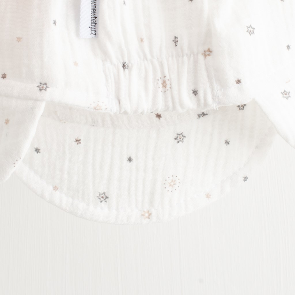 Letní mušelínová čepička s kšiltem české značky New Baby Arthur. Čepička ochrání hlavičku před prudkým sluncem a díky kšiltu, který udělá stín nespálí tvářičku a chrání oči dítěte před sluncem. Je krásně tvarovaná na ouška, zavazuje se na tkaničky, netlačí a bude dobře držet na hlavičce miminka. Mušelín je jedna z nejčistších, nejjednodušších a nejjemnějších tkanin na světě. Jemně tkaný prodyšný materiál je tak dokonalý, že si jej zamilují děti po celém světě. Lehká struktura umožňuje mušelínu „dýchat“ a zajišťuje dostatečnou cirkulaci vzduchu, čímž snižuje riziko přehřátí. Tato vlastnost pomáhá udržet Vaše dítě v pohodlí, bezpečí a rodiče v klidu. Mušelín je velmi odolný a to tak, že bez problémů zvládá opakované praní a postupem času je lehčí a jemnější. Složení: 100% bavlna. OEKO-TEX STANDARD 100.