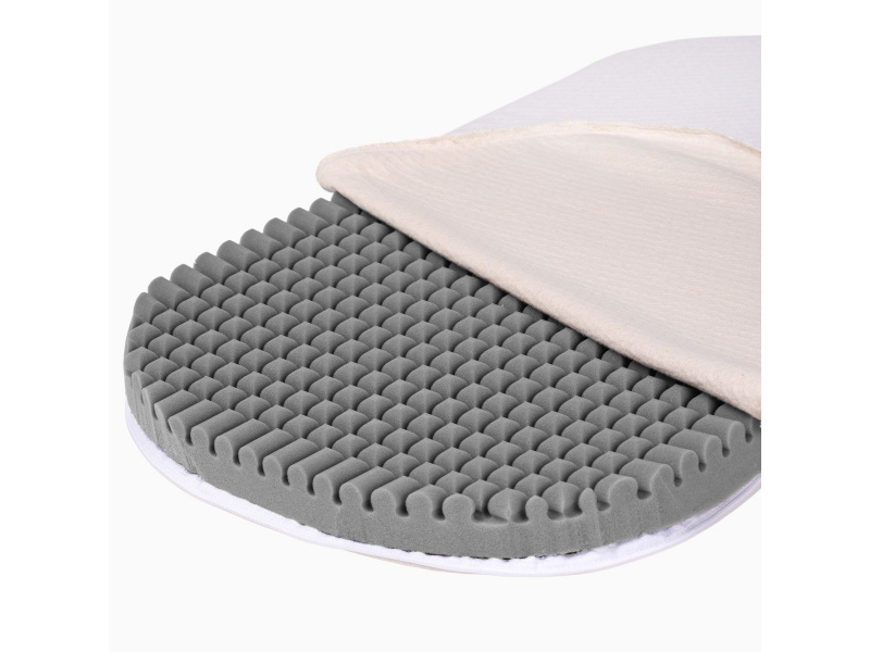 Hnízdo na spaní poskytuje miminku útulný prostor, ve kterém se mu bude díky většímu pocitu bezpečí lépe usínat. Součástí hnízda je dětská matrace Ecus Kids Care, certifikovaná matrace navržená pro maximální pohodlí a zdravý vývoj dítěte. Pomáhá předcházet zploštění hlavičky (plagiocefalii), minimalizuje riziko přehřátí i udušení a díky inovativním materiálům udržuje dítě vždy v suchu. Proti plagiocefalii - speciální bublinová struktura HR Oxygen pěny snižuje tlak na hlavu až o 70% Proti udušení - vzduchové kanálky uvnitř matrace zajišťují volné proudění vzduchu a odvádění CO2 Měkký bavlněný potah z organické bavlny šetrné k citlivé dětské pokožce Vhodné pro použití v postýlce, v cestovní postýlce i v posteli rodičů při společném spaní Zdravotní certifikace - registrovaný zdravotnický prostředek, doporučený pro prevenci plagiocefalie a syndromu náhlého úmrtí kojenců OEKO-TEX Standard 100 - zaručená nezávadnost materiálů, bez obsahu toxických látek Snadná údržba - snímatelný, pratelný potah (do 30°C, bez odstřeďování) Výška matrace: 5 cm Hmotnost: cca 0,7 kg Jádro: HR Oxygen pěna s hustotou 28 kg/m³ Polstrování: pěny s hustotou 18 kg/m3 a 20 kg/m³ Potah: 3D airsoftová tkanina 100% PES s antibakteriální úpravou Vhodné pro děti od narození do 8 kg.