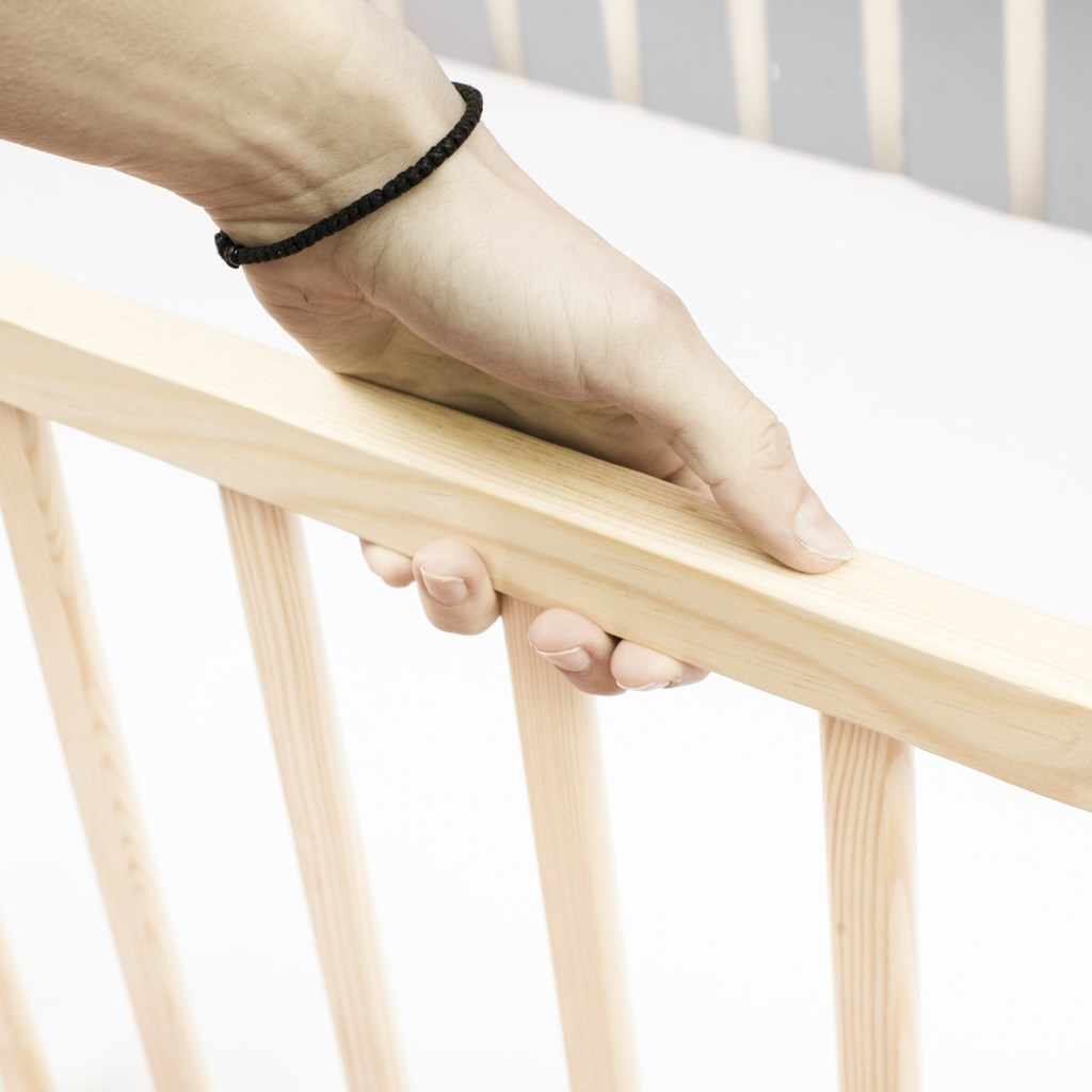 Je celá vyrobena z borovicového dřeva. Všechny materiály a suroviny použité při výrobě jsou schválené a certifikované, proto nábytek New Baby je zcela bezpečný a odolný.