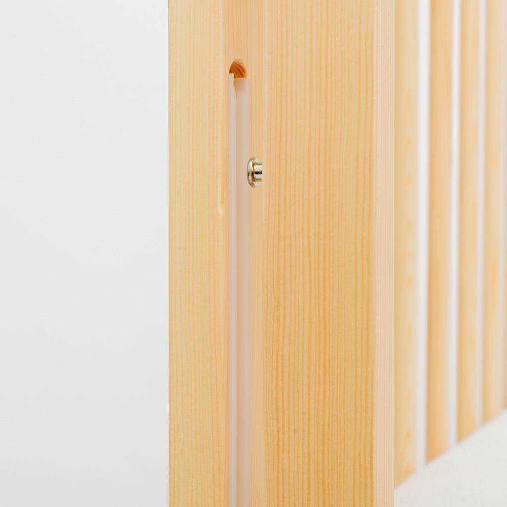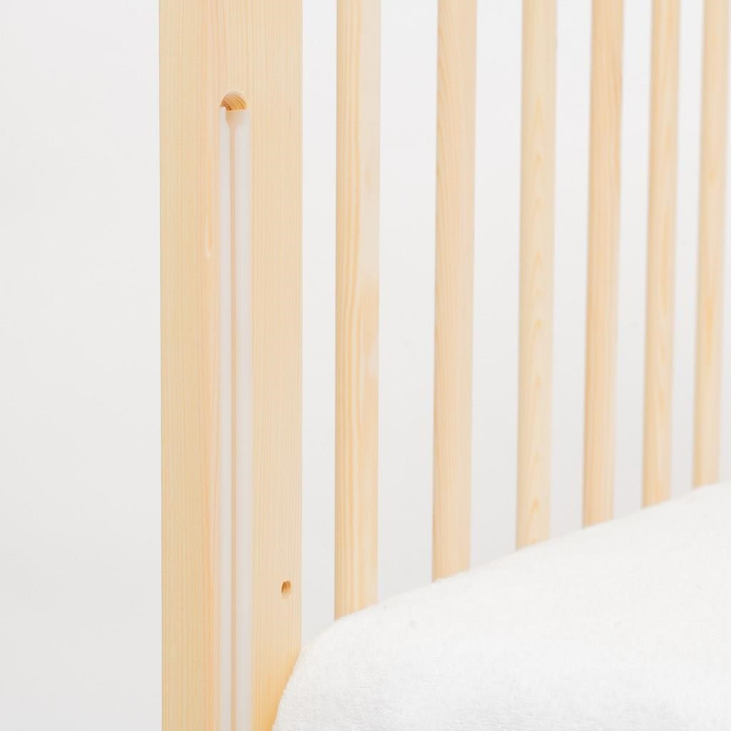 Boky postýlky jsou vyrobeny z 100% borovicového dřeva. Použité kvalitní ploché příčky jsou osazeny a ukotveny pomocí silného lepidla na vodní bázi.