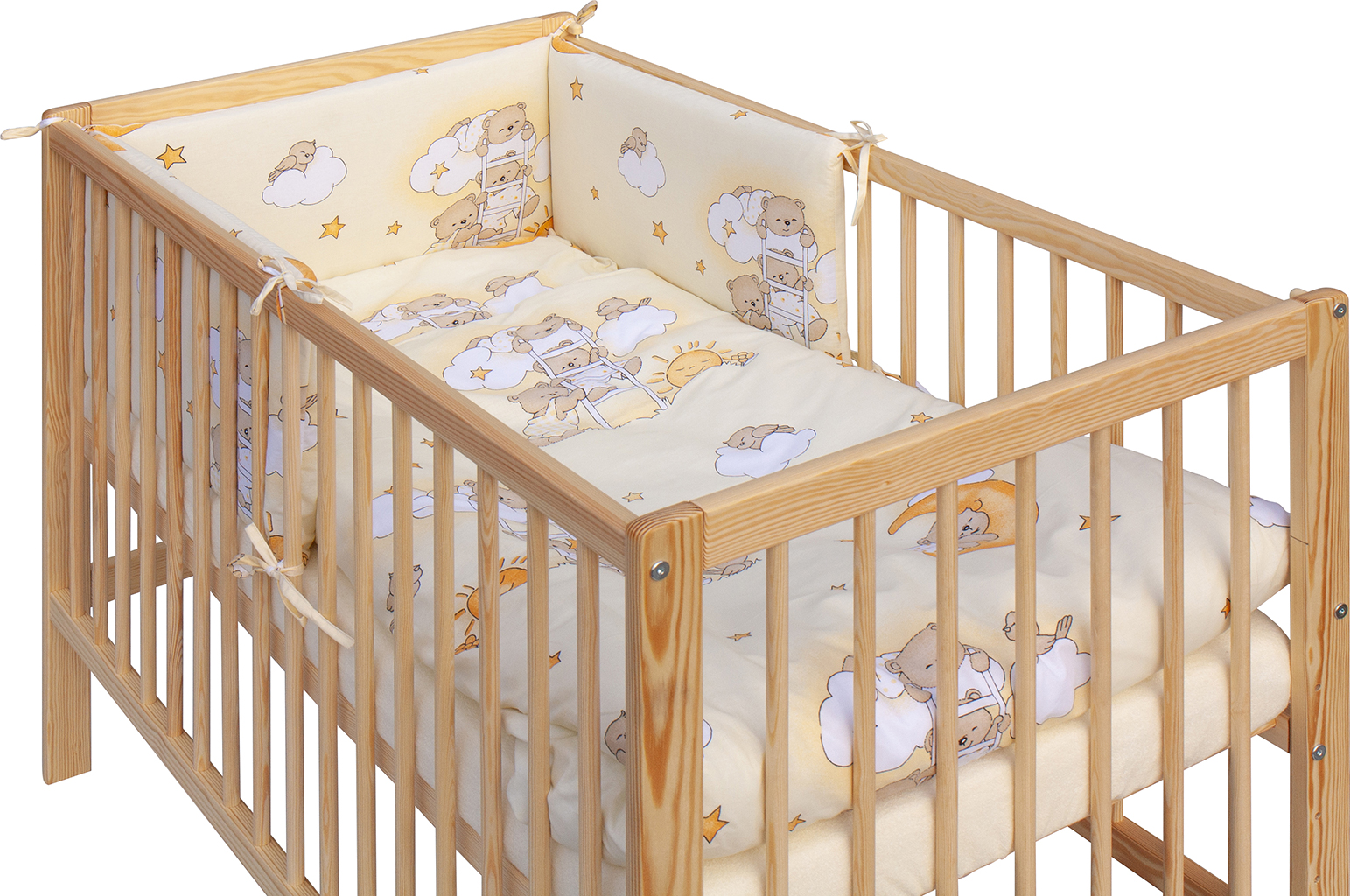 Součástí balení je kompletní výbava – kvalitní matrace, roztomilá sada povlečení, mantinel a prostěradlo, takže máte vše potřebné hned po rozbalení.