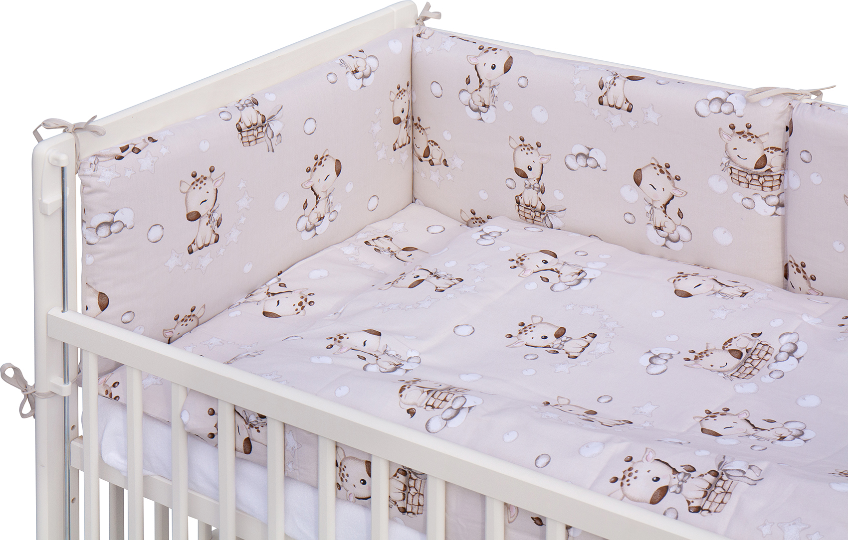 Součástí balení je kompletní výbava – kvalitní matrace, roztomilá sada povlečení, mantinel a prostěradlo, takže máte vše potřebné hned po rozbalení.
