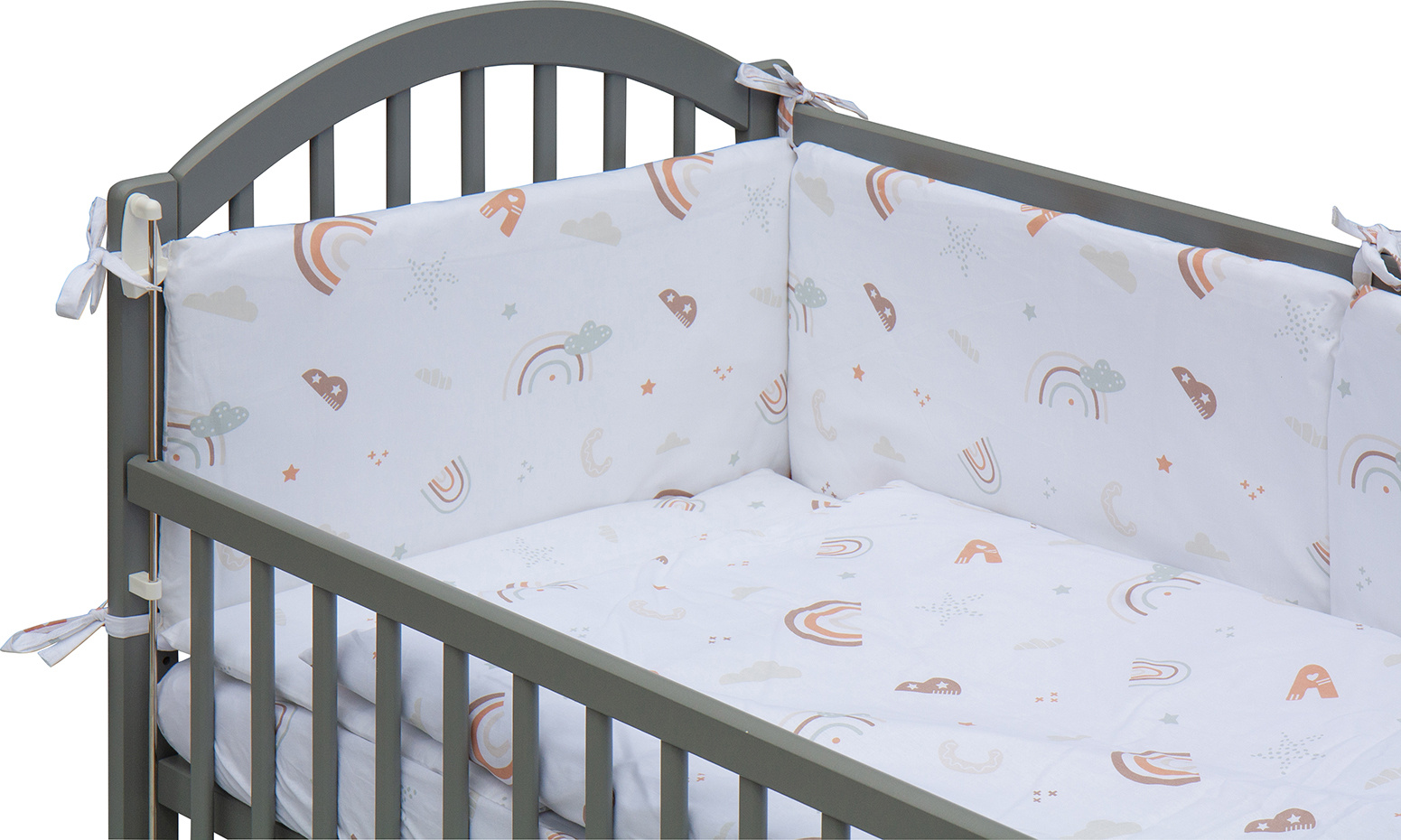 Dětská postýlka se stahovací bočnicí - šedá - 120x60 cm s kompletní výbavou Decentní motiv Barva soupravy: Krena