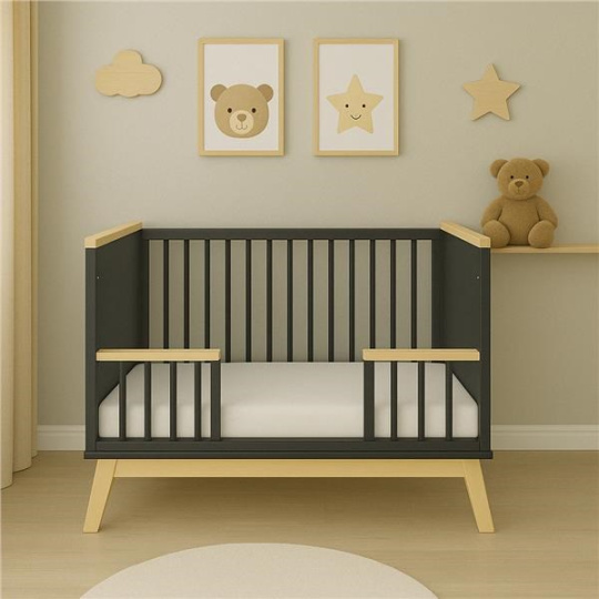 Dětská postýlka se zábranou New Baby MARCUS 120x60 cm grafit/přírodní