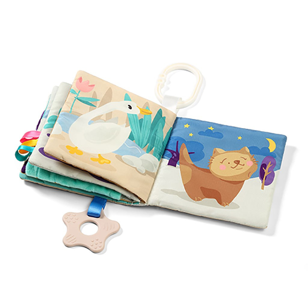 Knížka umožňuje získat nové dovednosti, od procvičování úchopu, přes stimulaci dásní pomocí kousátek s výstupky, až po naučení počítání a poznávání různých povrchů a tvarů. Má jasné, kontrastní barvy, které rozvíjejí zrak, představivost a schopnost soustředit se.