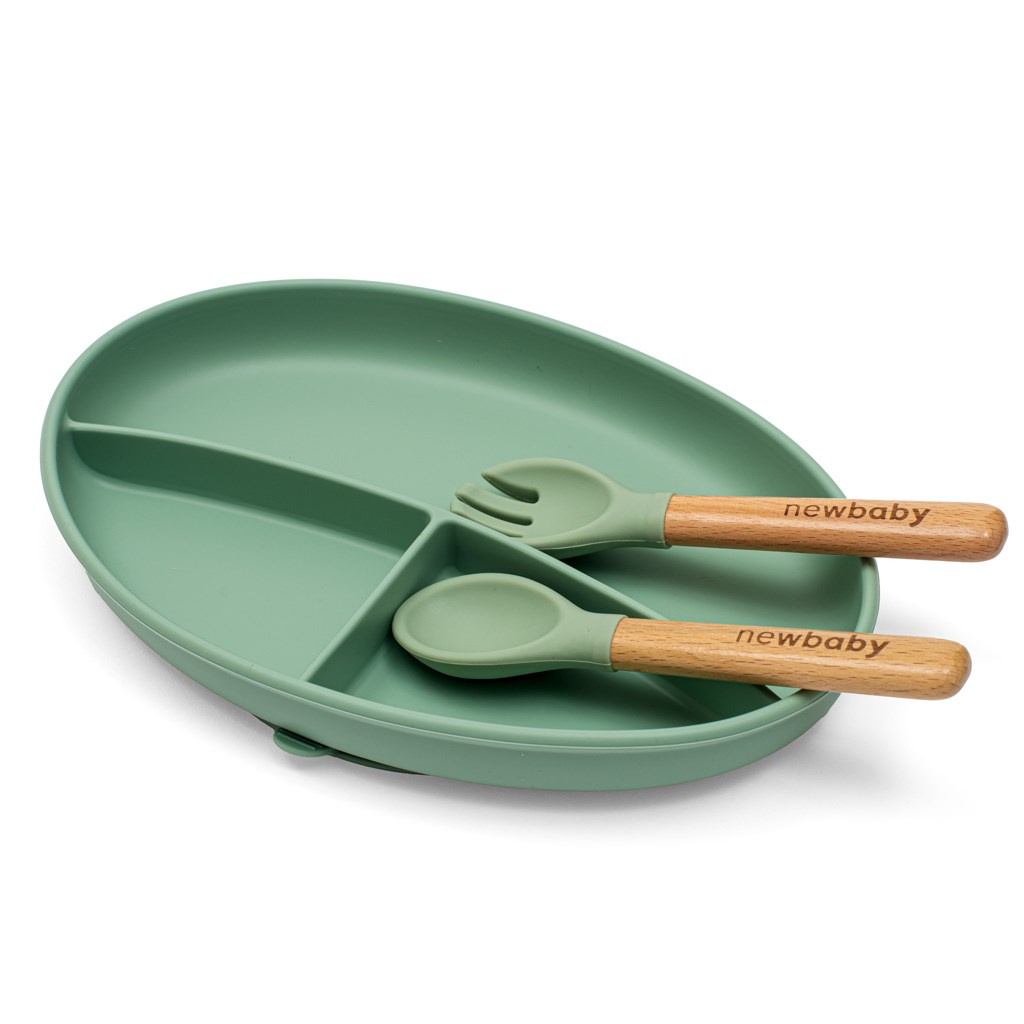 Dětská silikonová jídelní sada New Baby zelená
