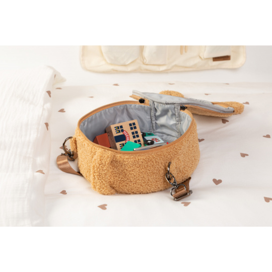 Roztomilá taška pro vaše dítě v podobě plyšového medvídka je designově sladěná s přebalovacími taškami Childhome Mommy Bag. Svojí velikostí je ideální pro uložení svačinky či oblíbených hraček. Nastavitelný popruh umožňuje přenášení v ruce i přes rameno. Taška je vyrobena z měkkého plyšového materiálu s podšívkou. Nosnost: 2 kg Rozměry: 24 x 24 x 10 cm Vhodné pro děti od 2 let.