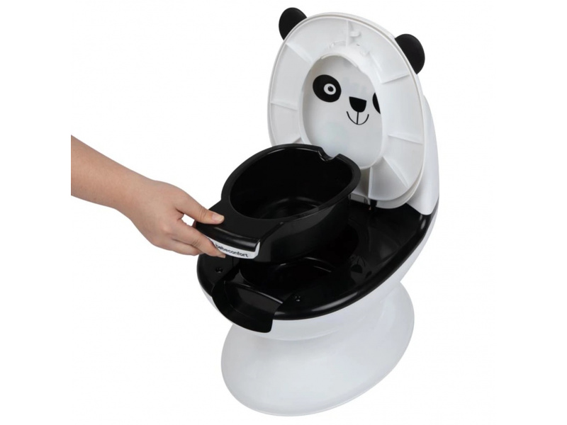 Dětská toaleta Bebeconfort Panda je věrnou kopií velké toalety a motivuje dítě k chození na nočník. Děti rády napodobují dospělé a s nočníkem ve tvaru toalety vybavené zvukem splachování bude trénování hygieny zábavou pro dítě i pro rodiče. Toaleta vhodná pro chlapce i dívky je vybavena vyjímatelnou mísou pro snadnou údržbu. Baterie 2x AAA 1,5V nejsou součástí balení. Rozměry: 41,5 x 27 x 36,5 cm Vhodné pro děti od 1 roku do cca 4 let (do 23 kg).