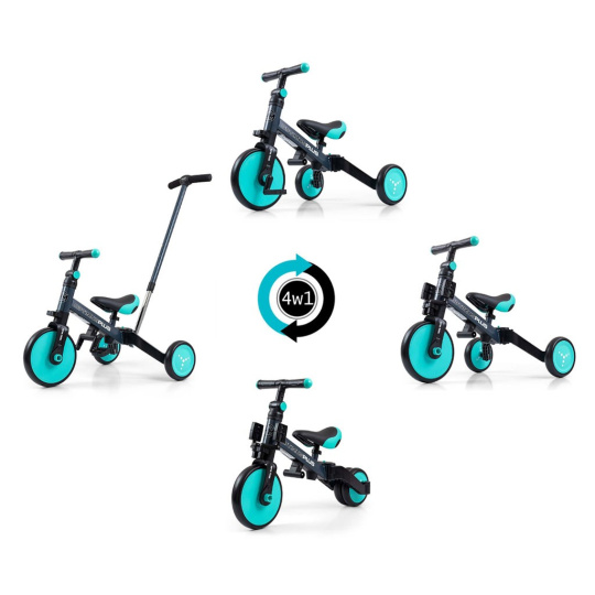 Dětská tříkolka 4v1 Milly Mally Optimus Plus s vodící tyčí mint