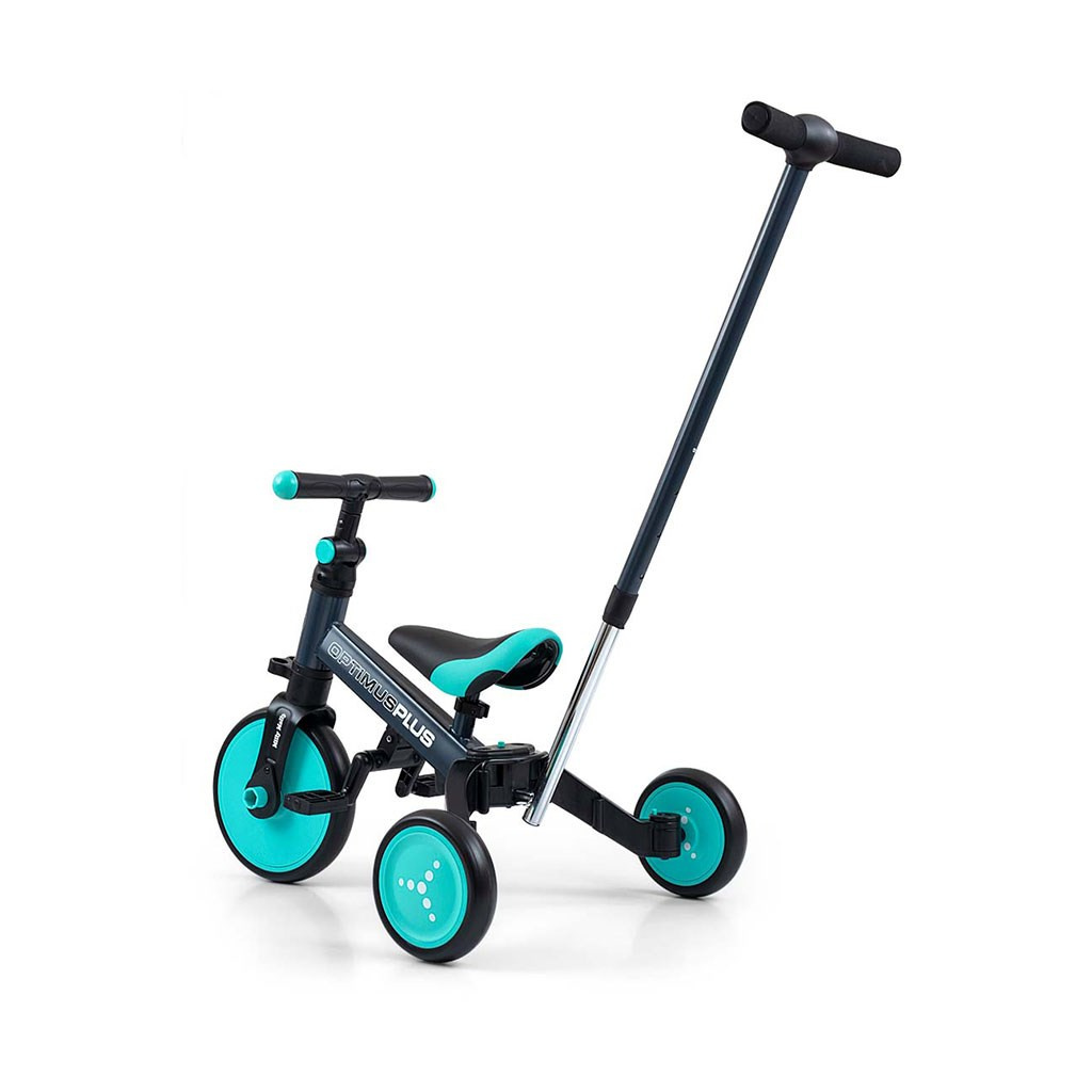 Dětská tříkolka 4v1 Milly Mally Optimus Plus s vodící tyčí mint