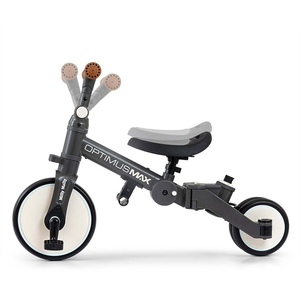 Optimus Max byl navržen tak, aby se stal jednou z nejlepších voleb pro první vozidlo vašeho dítěte. Díky stabilní tříkolové konstrukci poskytuje dítěti odpovídající úroveň bezpečnosti a usnadňuje získávání nových dovedností. Když má dítě již zvládnuté základy jízdy a nevyžaduje pomoc rodiče prostřednictvím řídicí rukojeti, můžeme přidat pedály nebo jej přeměnit na klasické odrážedlo.