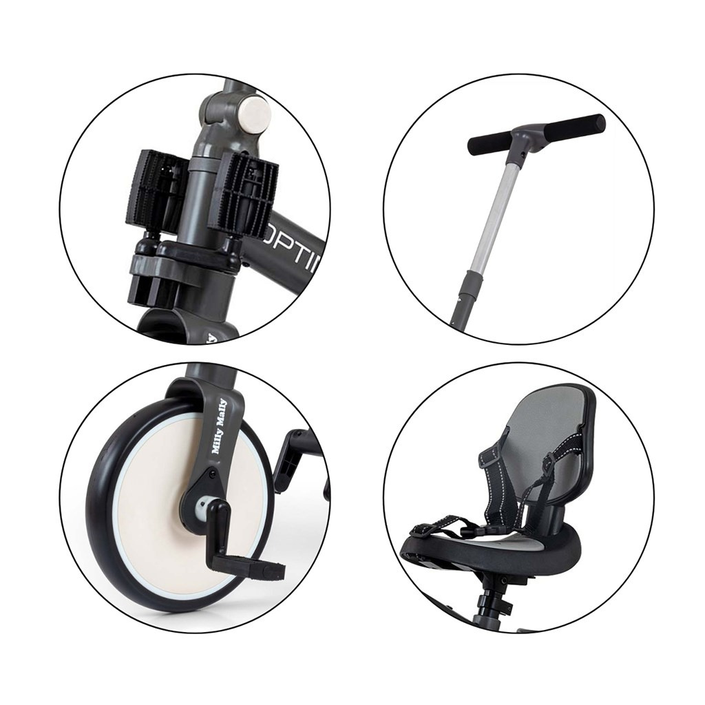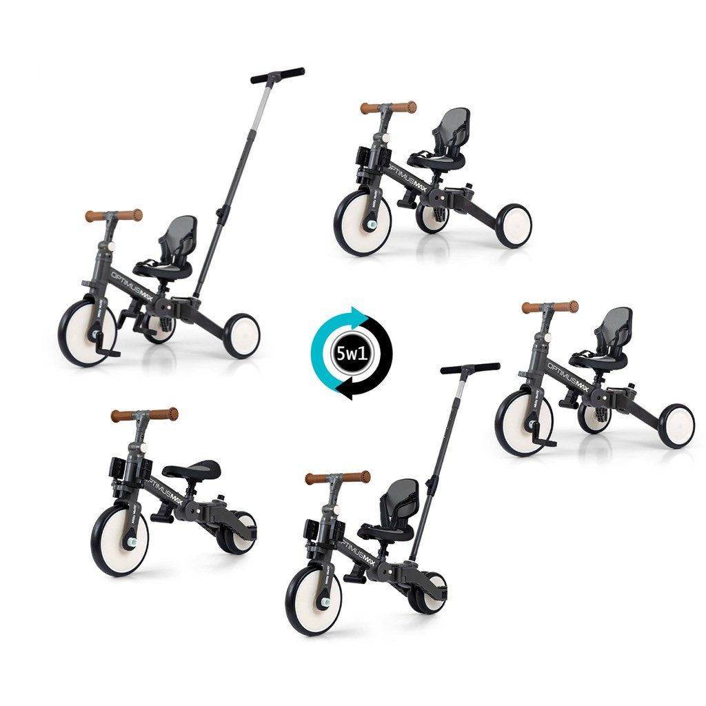 Dětská tříkolka 5v1 Milly Mally Optimus Max s vodící tyčí dark grey
