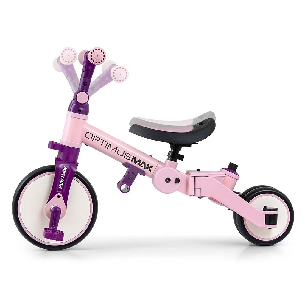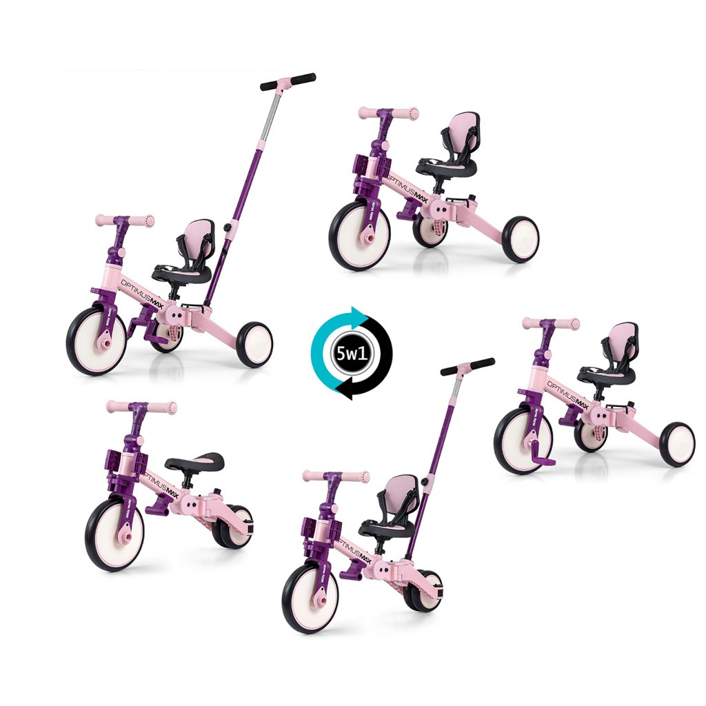 Dětská tříkolka 5v1 Milly Mally Optimus Max s vodící tyčí pink