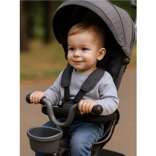 Dětská šlapací tříkolka Baby Mix 5v1 RELAX je multifunkční dopravní prostředek a je typickým příkladem produktů GROW UP - roste zároveň s dítětem. Tříkolku může ovládat jak dítě, tak i rodič pomocí nastavitelné vodící tyče. Po odebrání vodící tyče, sklápěcí stříšky, která chrání před sluncem nebo ostatních komponent bude sloužit jako tříkolka. Má moderní konstrukci, pohodlné a ergonomicky tvarované sedadlo, které je posuvné a otočné o 360 stupňů, což umožní dítěti cestovat ve směru nebo proti směru jízdy. Je vyrobena z kvalitních a odolných materiálů a skládací konstrukce umožňuje bezproblémovou přepravu tříkolky například v kufru auta. Její skládání je velmi jednoduché, intuitivní a nevyžaduje žádné nářadí. O pohodlí a bezpečí během jízdy se stará odnímatelná hrazda, pětibodové bezpečnostní pásy, pohodlné stupačky nebo kola vyrobena z tvrzené pěny EVA, která skvěle absorbují nerovnosti, poskytují perfektní přilnavost a nevyžadují huštění. Pro uložení hraček nebo potřeb pro dítě je zde praktický úložný košík.