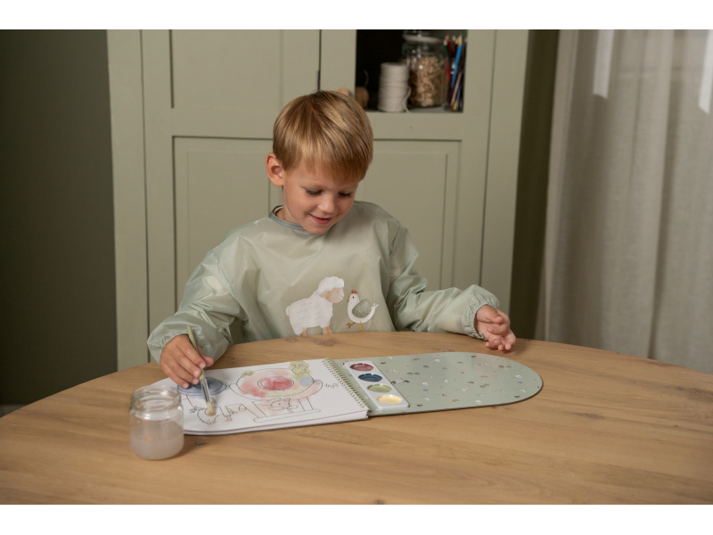 Když se vaše dítě pustí do malování, kreslení či jiného tvoření, barva může snadno skončit kdekoli na jeho oblečení. Tato lehká, voděodolná zástěra s dlouhými rukávy oblečení dítěte bezpečně ochrání. Díky zapínání na suchý zip vzadu a praktickým manžetám s gumičkou na rukávech se zástěra snadno obléká i svléká. Při znečištění stačí zástěru otřít vlhkým hadříkem. Zástěra s krásným potiskem v podobě ovečky a slepičky je součástí designové kolekce Little Dutch Farma, ve které najdete ložní prádlo, dekorativní doplňky do dětského pokoje, dřevěné a plyšové hračky i jídelní doplňky pro dětské stolování. Materiál: polypropylen Vhodné pro děti cca od 3 do 5 let.