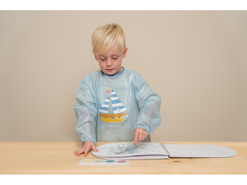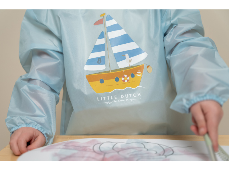 Když se vaše dítě pustí do malování, kreslení či jiného tvoření, barva může snadno skončit kdekoli na jeho oblečení. Tato lehká, voděodolná zástěra s dlouhými rukávy oblečení dítěte bezpečně ochrání. Díky zapínání na suchý zip vzadu a praktickým manžetám s gumičkou na rukávech se zástěra snadno obléká i svléká. Při znečištění stačí zástěru otřít vlhkým hadříkem. Zástěra s krásným potiskem plachetnice je součástí designové kolekce Little Dutch Námořnický záliv, ve které najdete ložní prádlo, dekorativní doplňky do dětského pokoje, dřevěné a plyšové hračky i jídelní doplňky pro dětské stolování. Materiál: nylon Vhodné pro děti cca od 3 do 5 let.