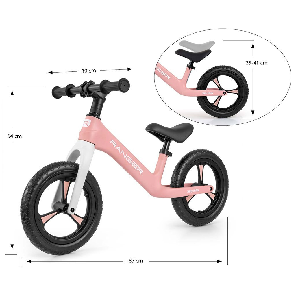 Odolná a vyrobená nejnovější technologií EVA pěny, 12" kola odolná proti propíchnutí, která není třeba nafukovat, jsou bezúdržbová. Ergonomické, výškově nastavitelné sedlo s měkkou výplní zajišťuje dítěti pohodlí při jízdě a roste s dítětem. Kolo Ranger má řídítka v kuličkových ložiskách, rovněž kola s kuličkovými ložisky. Protiskluzové rukojeti z měkké gumy zajišťují pevné uchopení a pohodlné vedení.