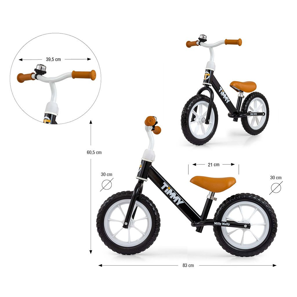 Balanční kolo TIMMY učí rovnováze a koordinaci. Jedná se o lehké kolo, které nemá pedály ani řetěz. Místo toho se na něm děti pohybují tak, že se odrážejí nohama od země, což jim umožňuje postupně získávat jistotu a dovednost v jízdě na dvou kolech. Nastavitelné sedlo umožňuje optimálně přizpůsobit kolo výšce dítěte. Je tvarované a poskytuje pohodlné používání. TIMMY je oblíbenou volbou mezi rodiči, kteří chtějí, aby jejich děti mohly aktivně trávit čas venku a zároveň se učily novým dovednostem.