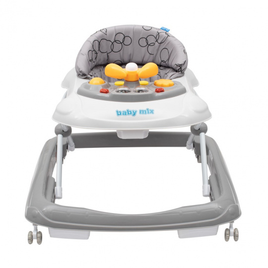 Moderní chodítko Baby Mix je skvělým pomocníkem při prvních krůčcích dítěte. Nabízí maximální pohodlí, zábavu a bezpečnost. Díky ergonomicky tvarovanému sedadlu podporuje správné držení těla, zatímco multimediální panel se světelnými a zvukovými efekty dítě motivuje k pohybu i hře.