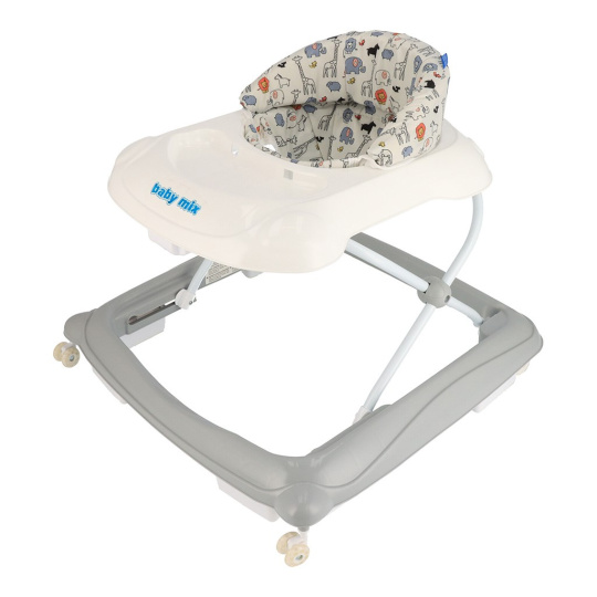 Multimediální chodítko Baby Mix se silikonovými kolečky. Chodítko je vybaveno pohodlným ergonomicky tvarovaným sedadlem, které zajišťuje správné držení páteře. Multimediální panel obsahuje různé světelné efekty, troubící volant, kterým lze otáčet, tlačítka pro přehrávání melodií a dvě světla. Krásné chodítko s hračkami okouzlí malé objevitele a umožní jim hrát si ještě déle. Chodítko je vybaveno speciálním systémem proti převrácení, který zajistí Vašemu dítěti pohodlí a bezpečnost.