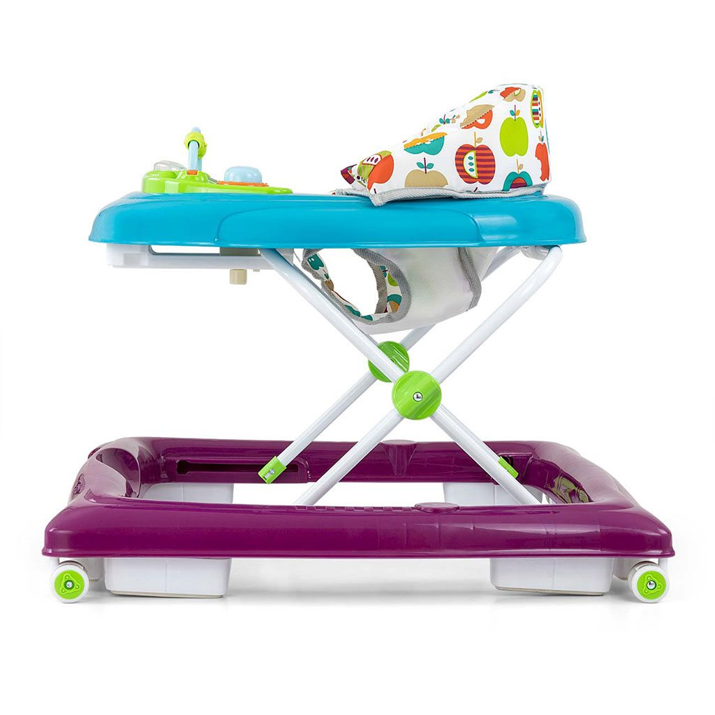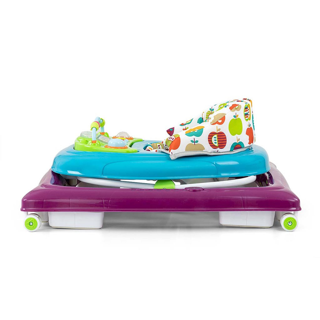 Čtyři kvalitní otočná kolečka, která nepoškrábou povrch, po kterém se pohybují, zajistí volnost pohybu a osm gumových zarážek ochrání dítě před sklouznutím ze schodů nebo jiných překážek.