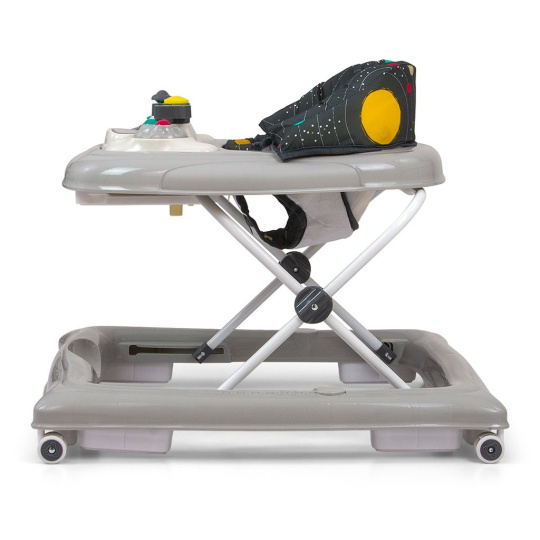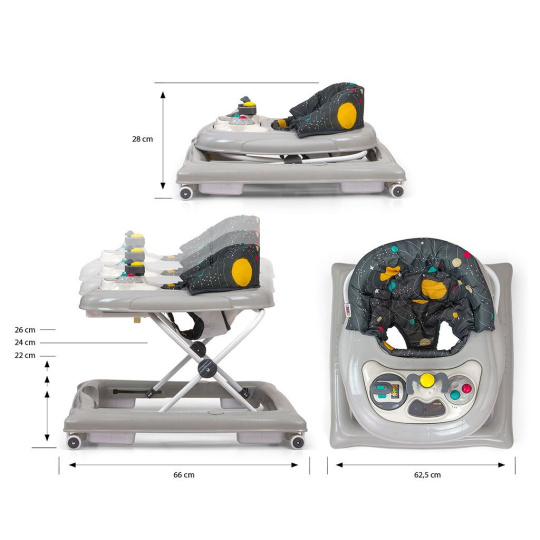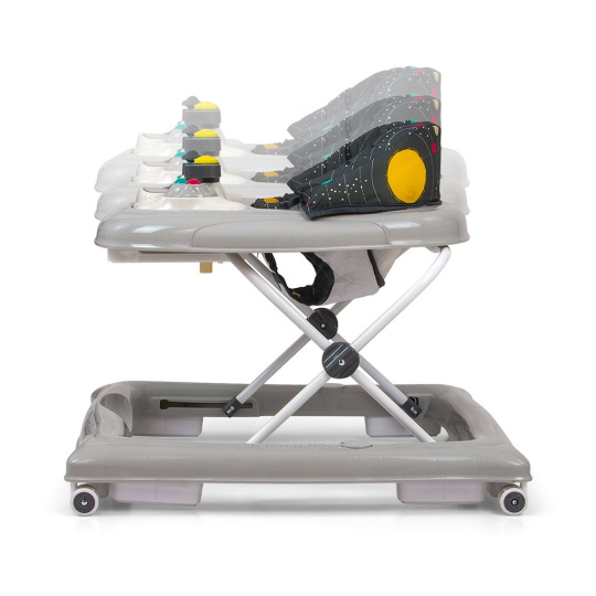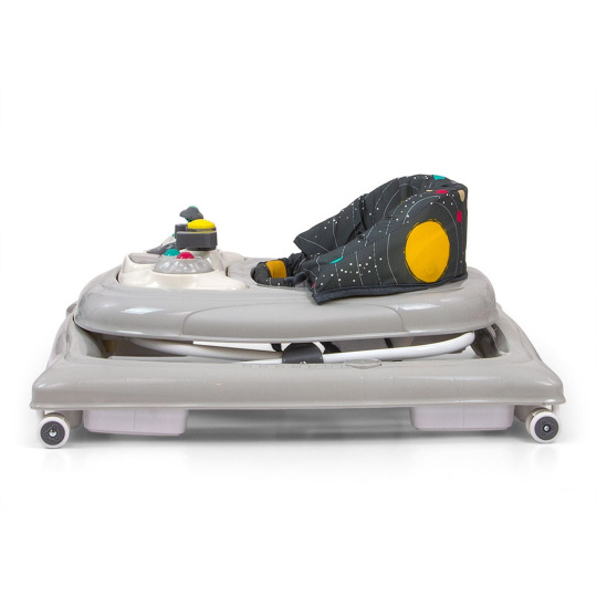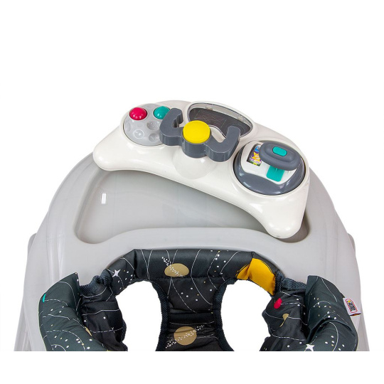 Výrobek má výukový panel, který obsahuje řadu překvapení čekajících na malé průzkumníky: světýlka, pískání, melodie, chrastítko, tlačítka a další pohyblivé prvky. Po sejmutí panelu z podnosu chodítka poslouží jako samostatná hračka, například jako společník na cesty, a deska poslouží jako hrací stolek.