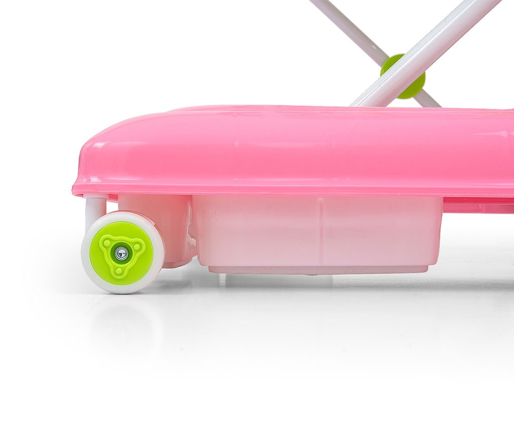 Čtyři kvalitní otočná kolečka, která nepoškrábou povrch, po kterém se pohybují, zajistí volnost pohybu a osm gumových zarážek ochrání dítě před sklouznutím ze schodů nebo jiných překážek.